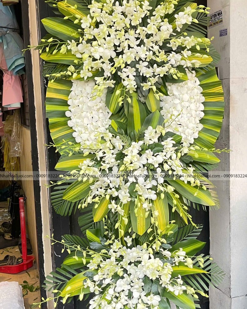 Địa chỉ cung cấp vòng hoa viếng đẹp tại Bình Thạnh với sắc lan Thái trắng trang nghiêm, đáp ứng nhanh nhu cầu viếng tang lễ hỏa tốc. Nhà Hoa Tươi hỗ trợ giao hoa tận nơi chu đáo tại Gò Vấp, Tân Phú và tất cả các khu vực thuộc quận Bình Thạnh.